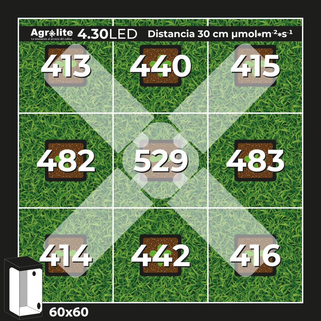 4.30 LED de Agrolite es una lámpara led con 4 paneles móviles que permite ajustar la unidad a distintos usos. Este foco emite luz apta para las fases de crecimiento y floración gracias a una combinación de chips basada en los requerimientos fotolumínicos de las plantas.