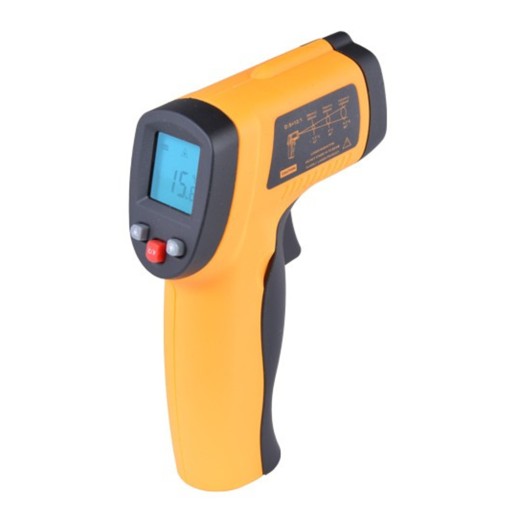 Este termómetro con infrarrojos trabaja en un rango de -50 ºC a 330 ºC por lo que resulta especialmente recomendable para objetos sometidos a altas temperaturas. Se trata de un instrumento de alta precisión y de alta resolución, dotado con pantalla LCD con luz de fondo, lo que permite la obtención de datos de forma clara. Es un termómetro de bajo consumo de energía, portátil y cómodo de manejar pero también seguro, debido a la resistencia de su material de aislamiento.
